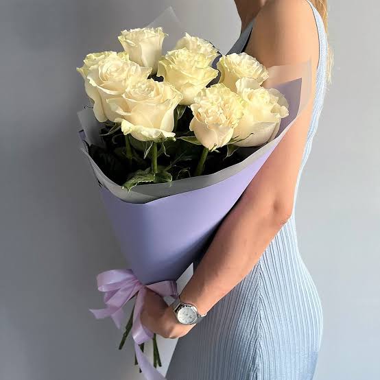 Букет из 9 очаровательных белых роз можно купить в Байконуре и Республике Казахстан за 9900 тенге с быстрой бесплатной доставкой в магазине букетов «Ultra Flowers»: